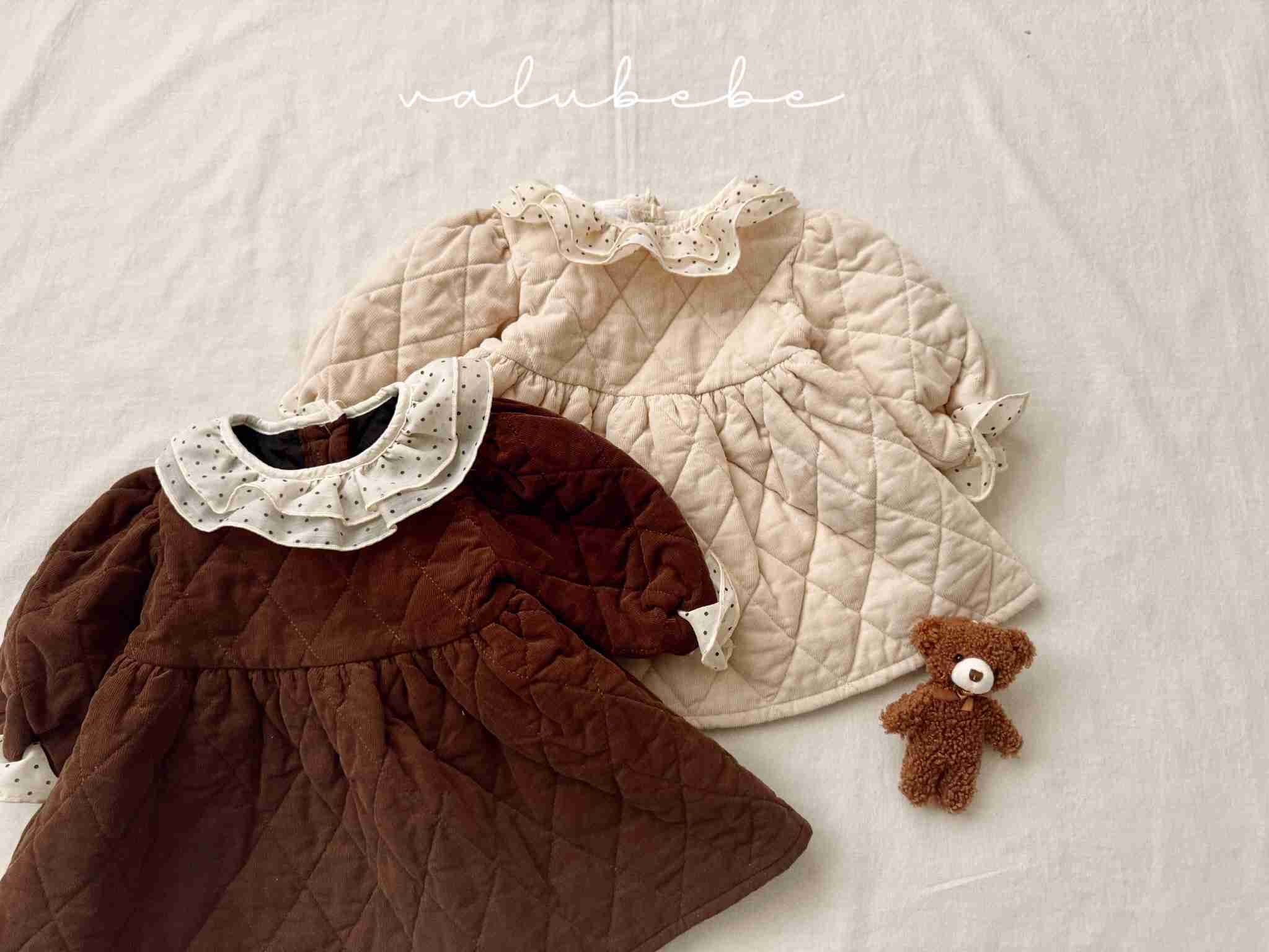 ドットカラ—キルティングワンピース