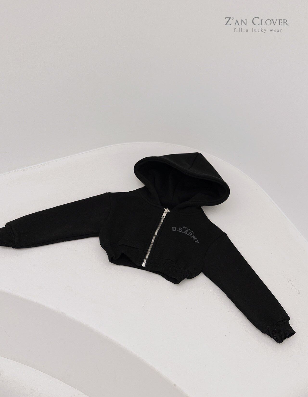 army cropped hoodie zip-up (double fleece-lined)