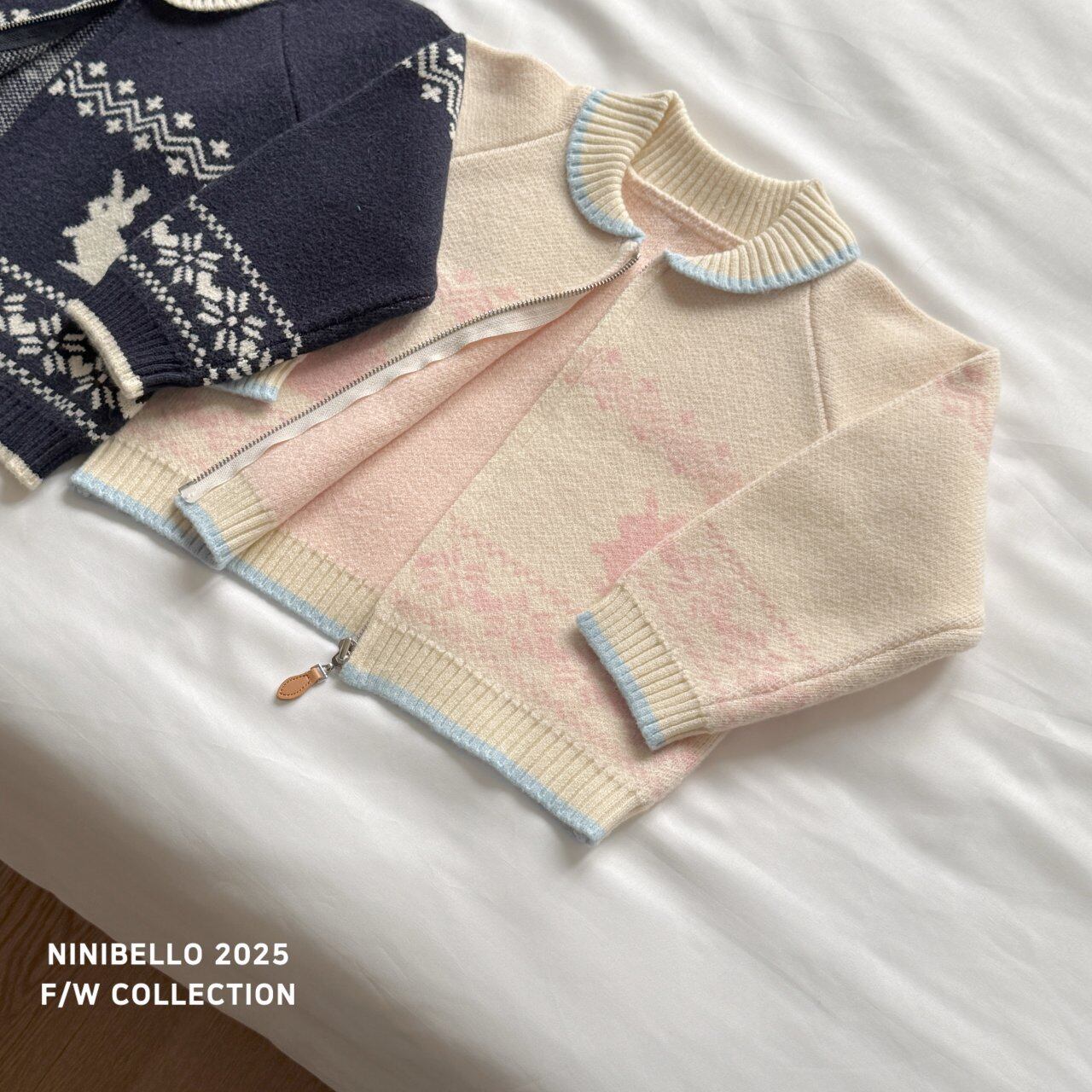 bunny nordic knit zip-up