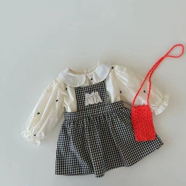 small ribbon check dress blouse set