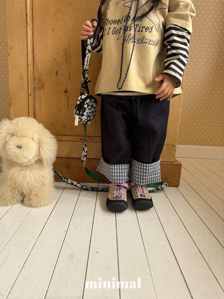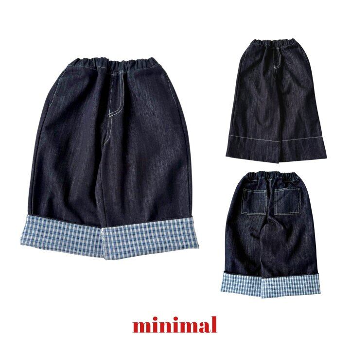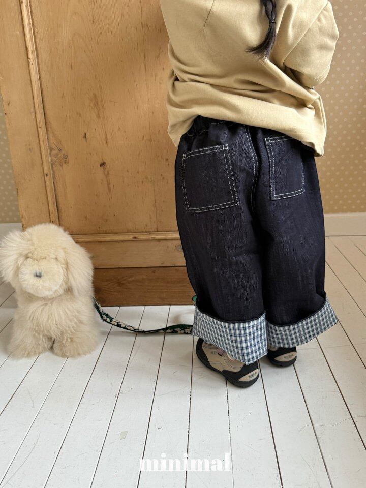 roll-up check denim pants