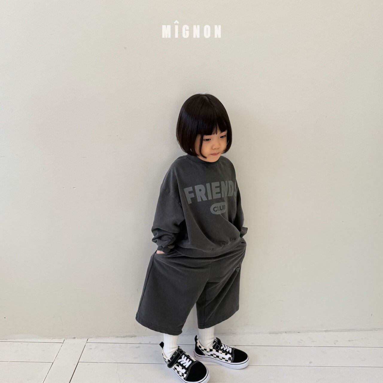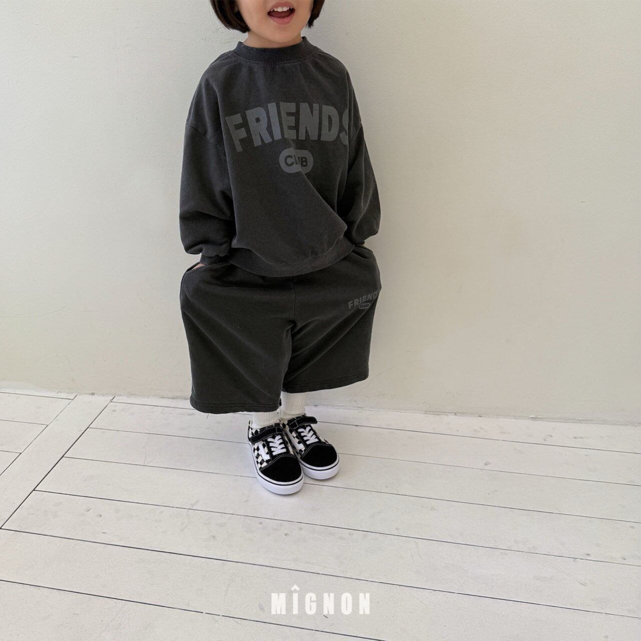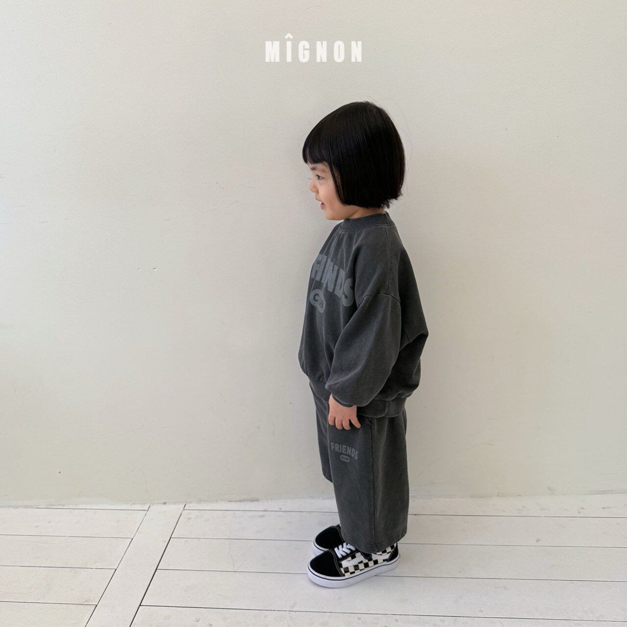 mignon minyon みにょん ミニョン 韓国子供服 韓国 子供服 こどもふく 女の子 男の子 リンクコーデ 親子リンクコーデ 兄弟 姉妹 kids キッズ スウェット mtm ジョーガー スカート Tシャツ 幼稚園 jr ジュニア ジュニア服 10代 小学生