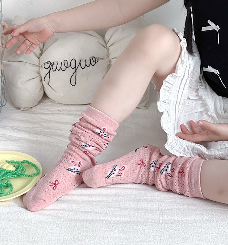 pink rabbit half tights set