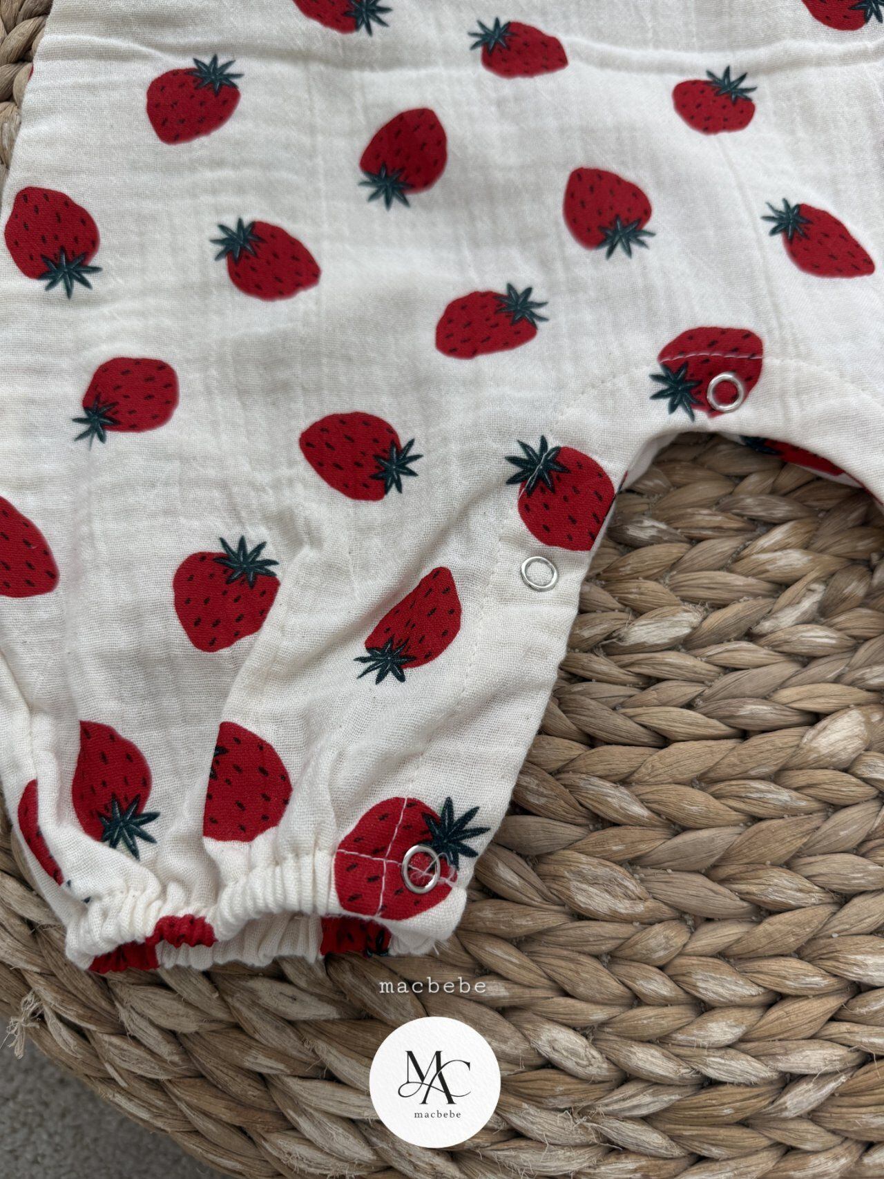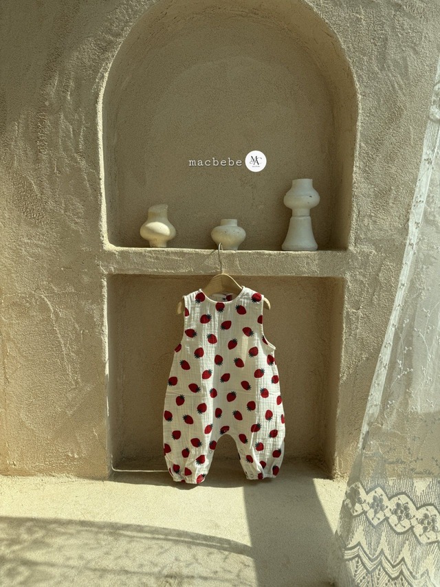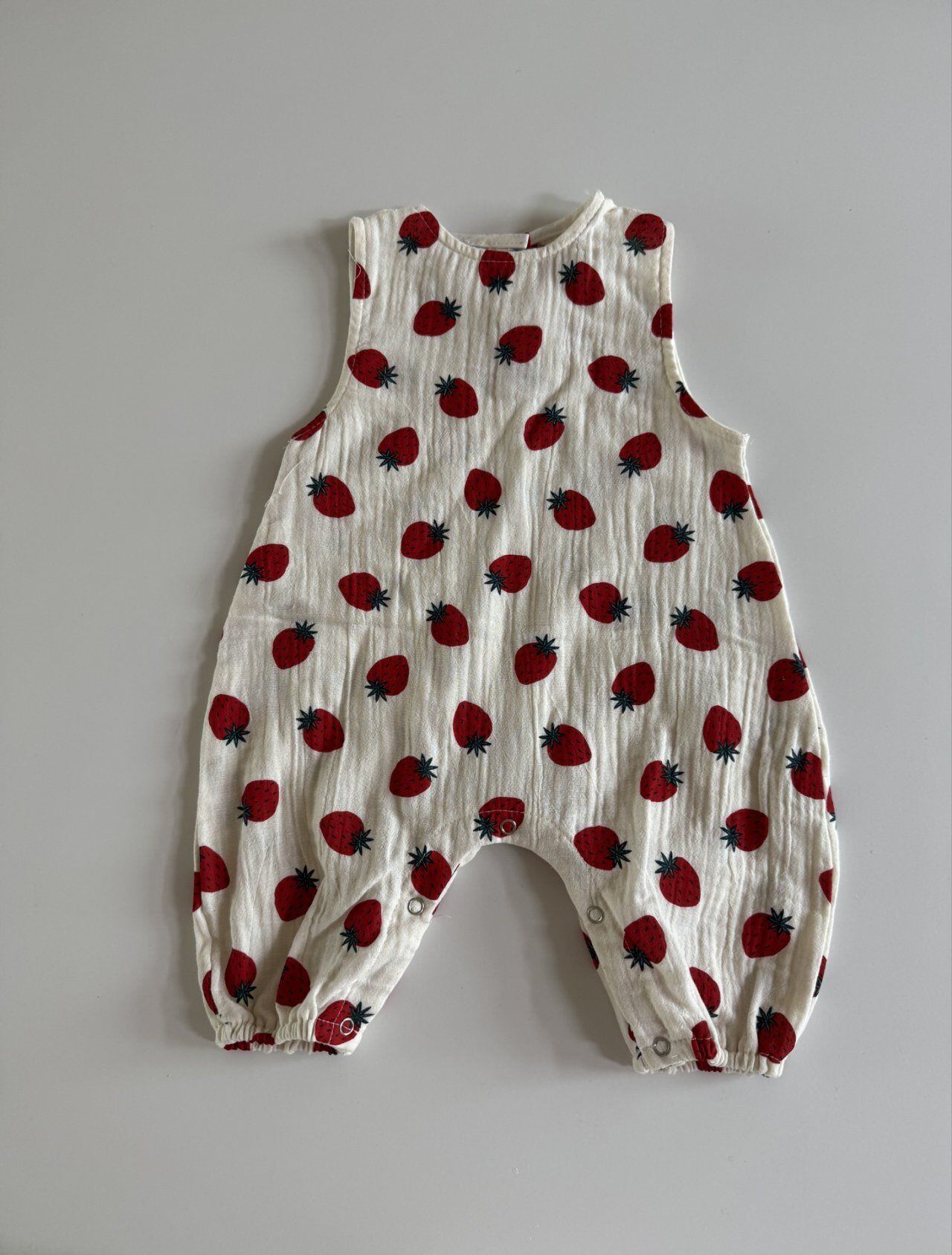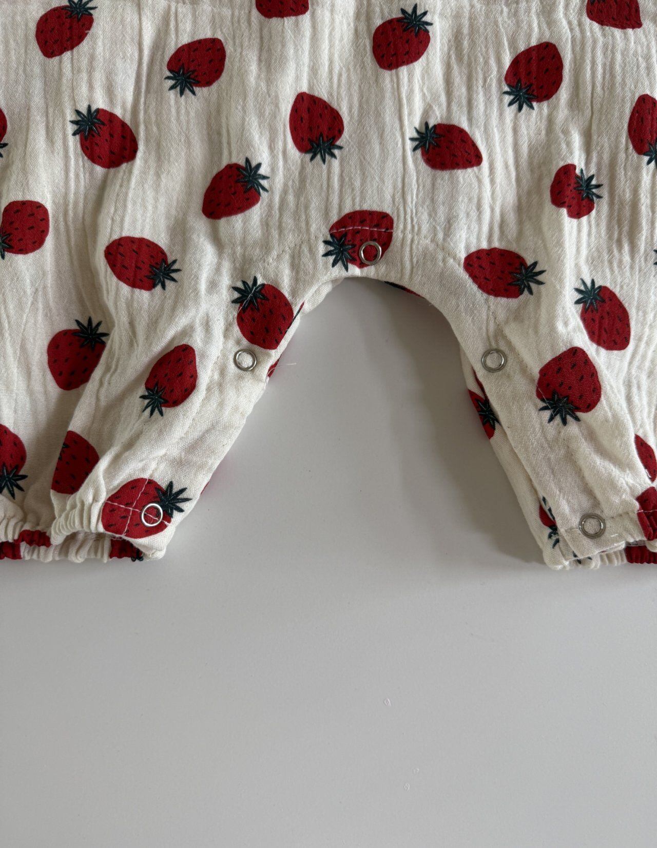 バックボタンクレープロンパース (ストロベリー)