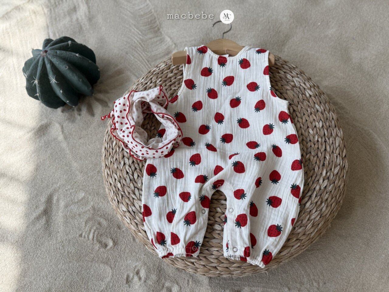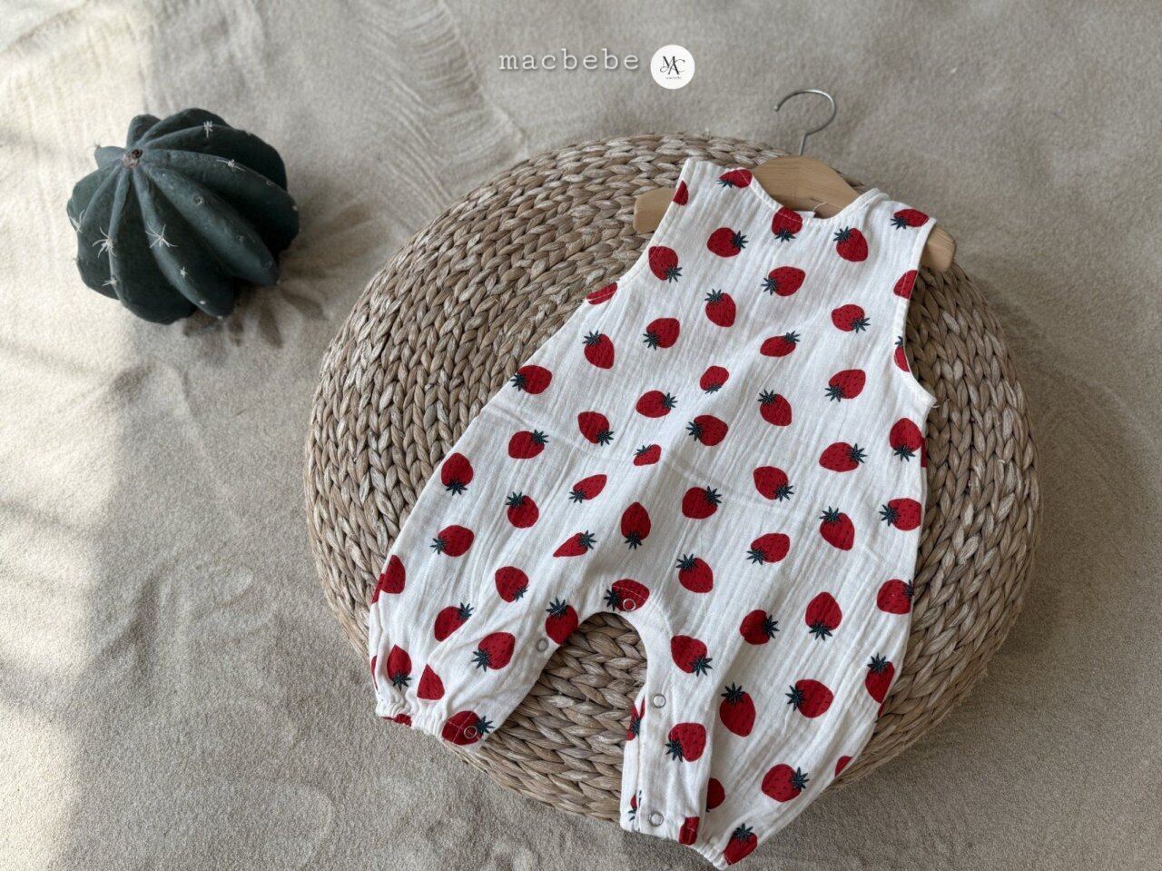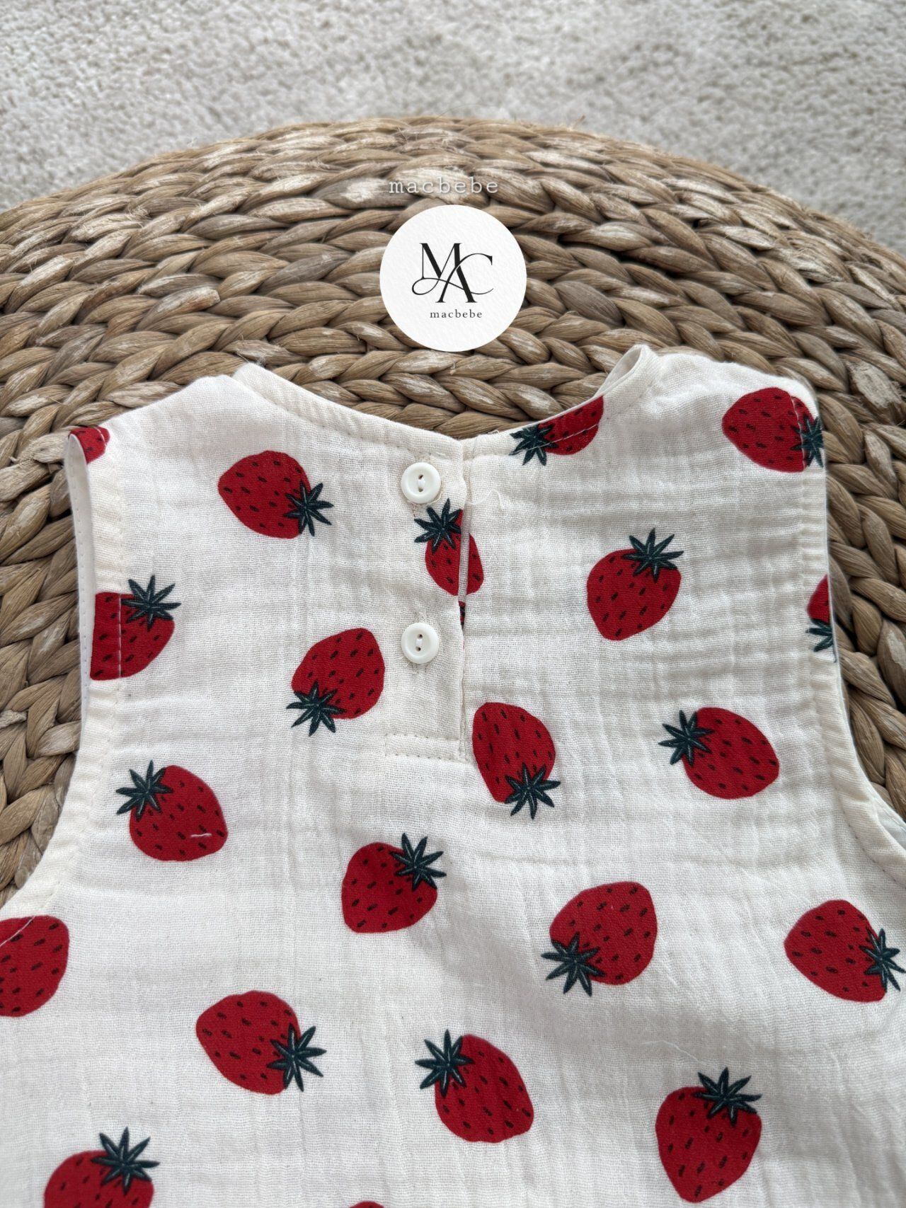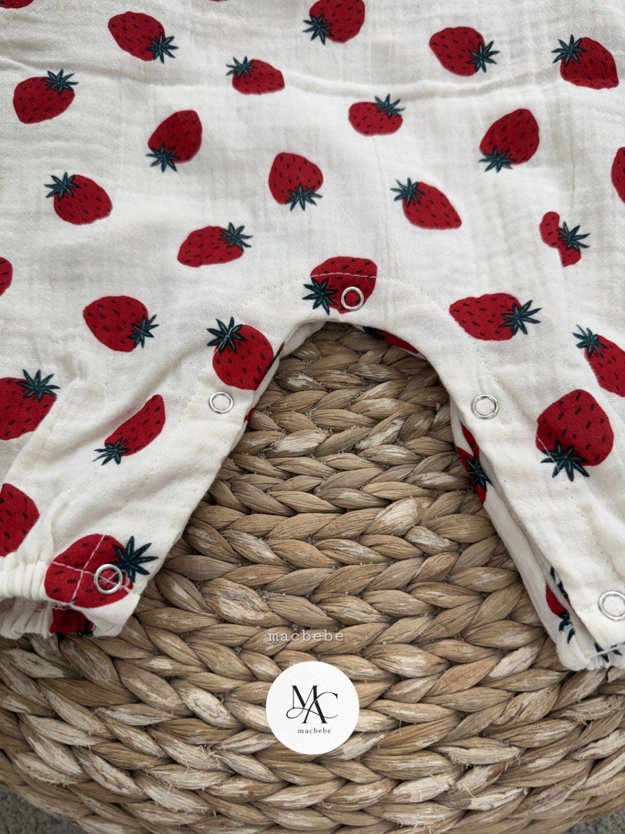 バックボタンクレープロンパース (ストロベリー)