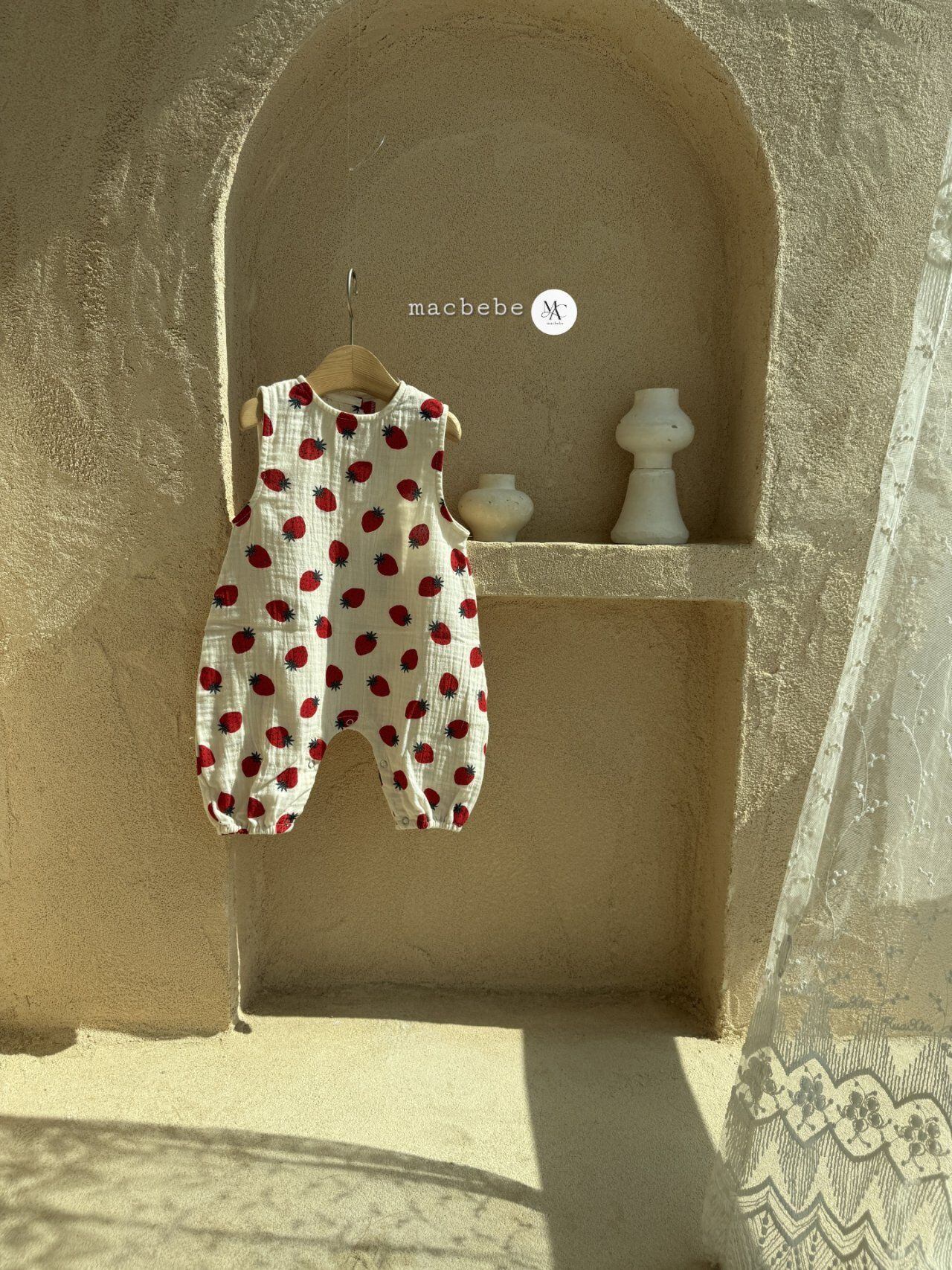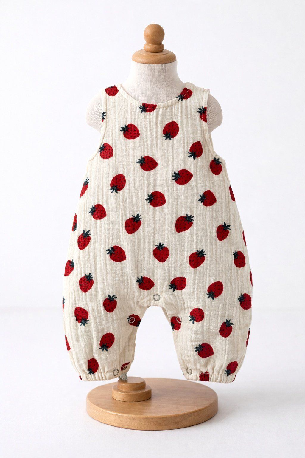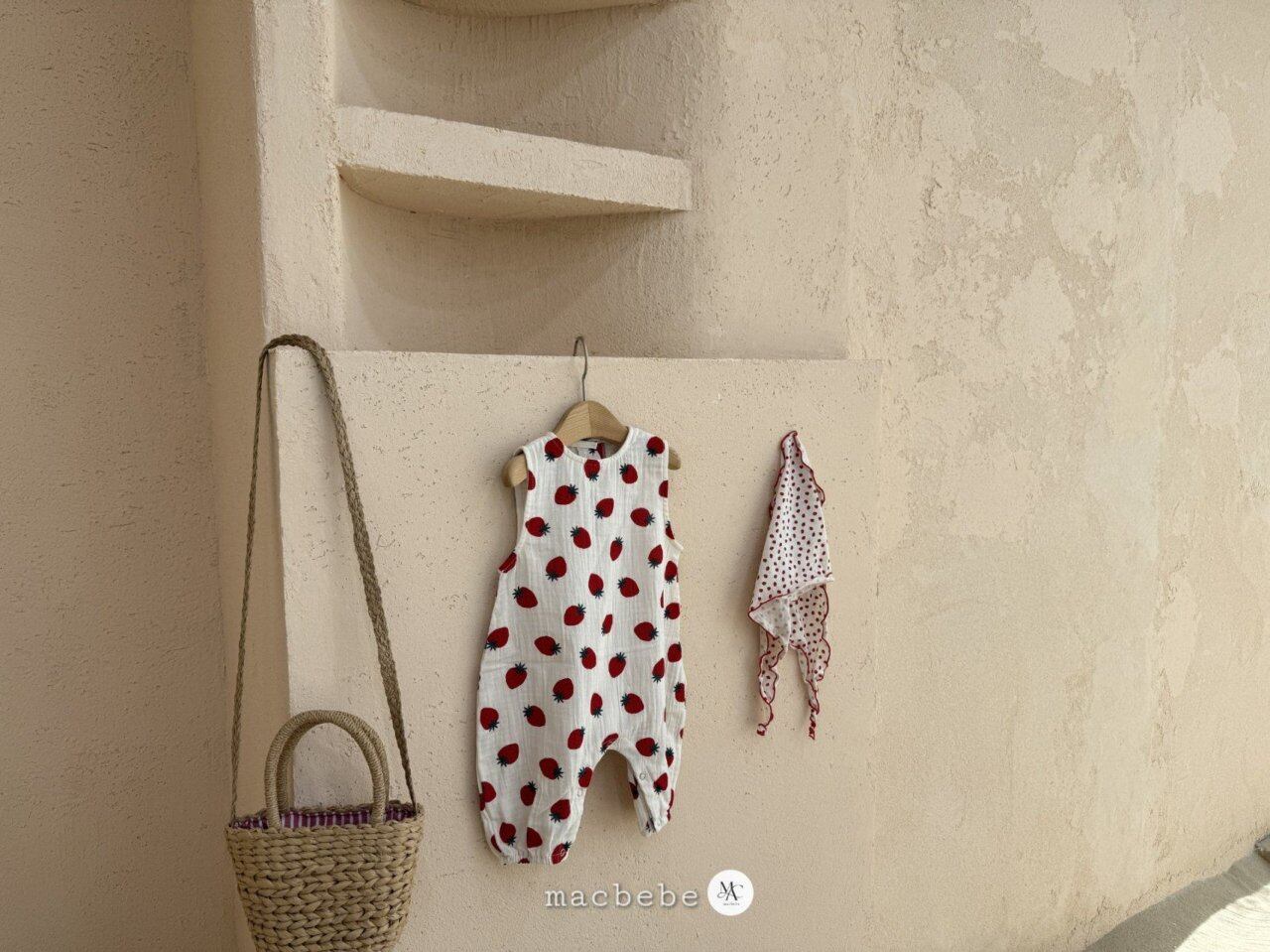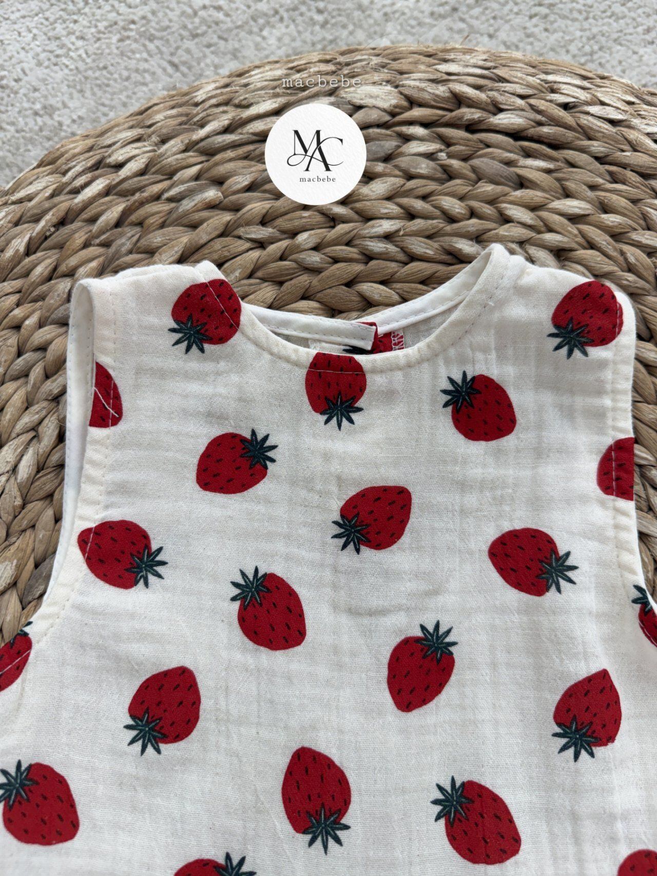 バックボタンクレープロンパース (ストロベリー)