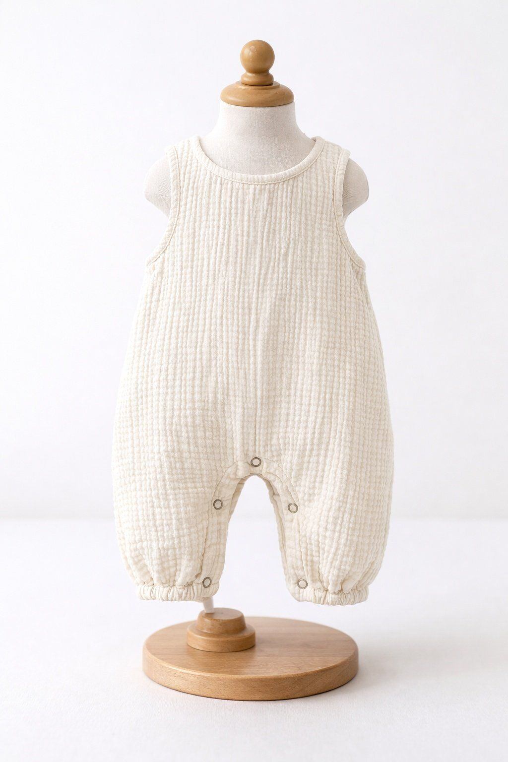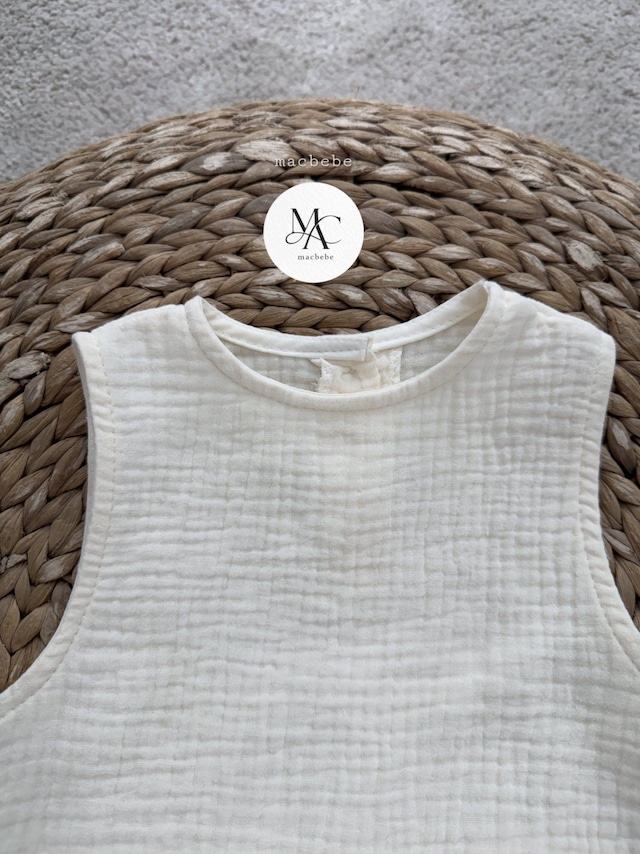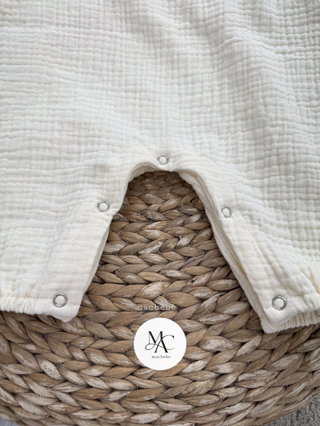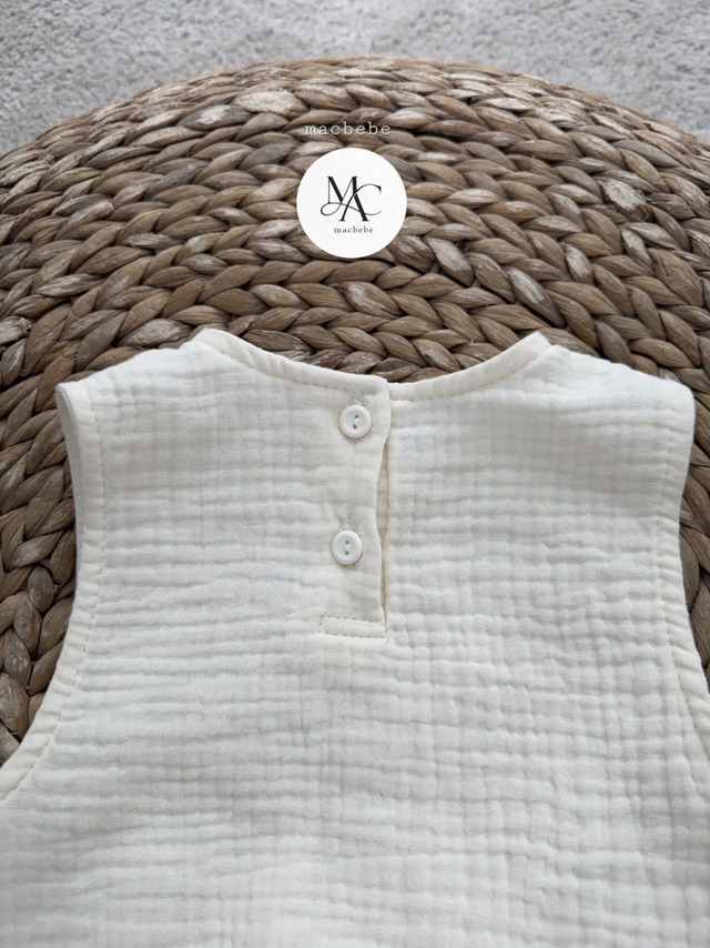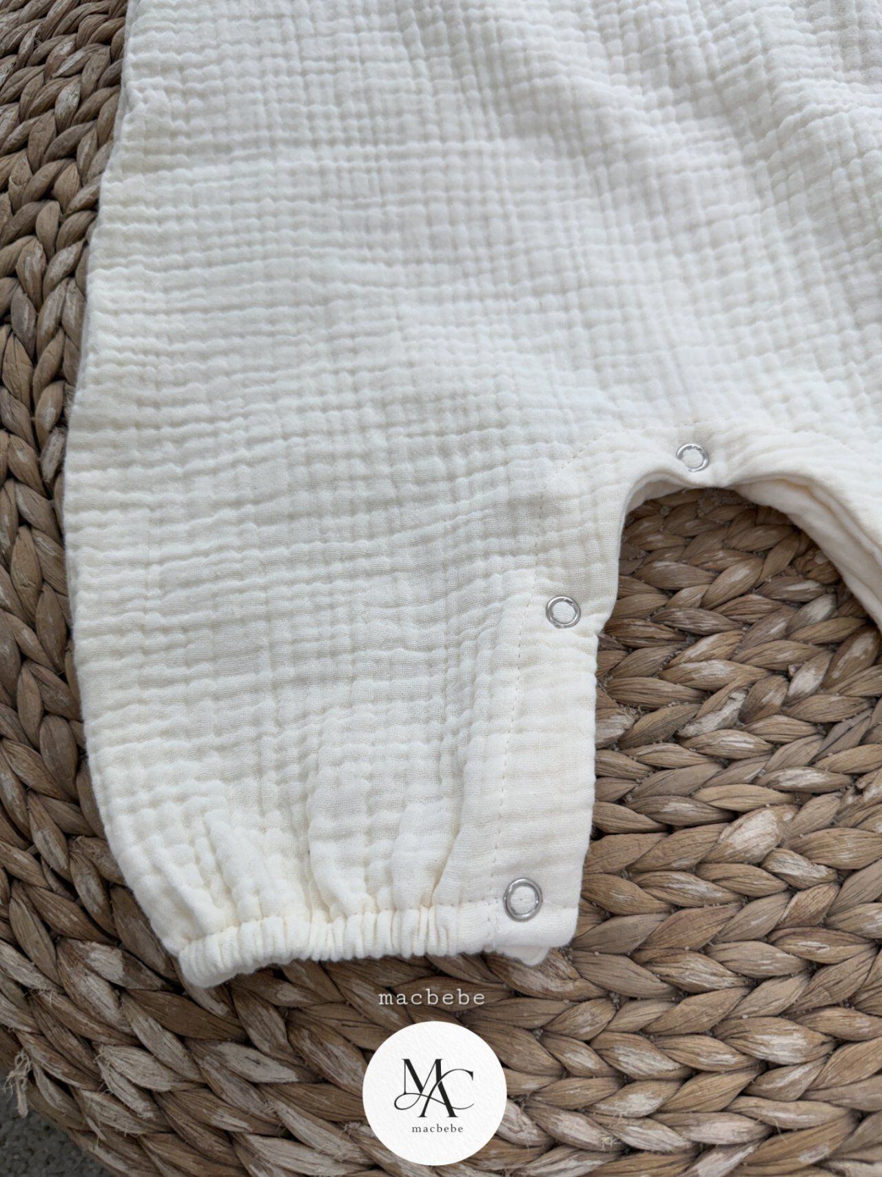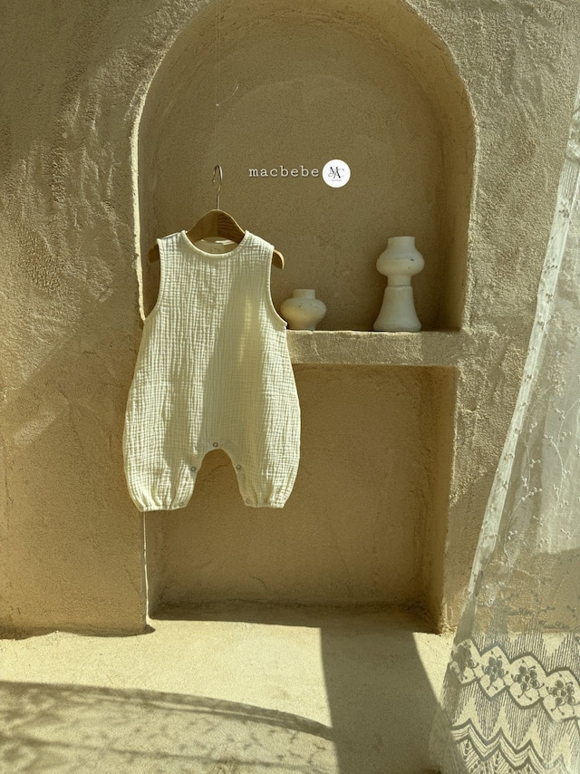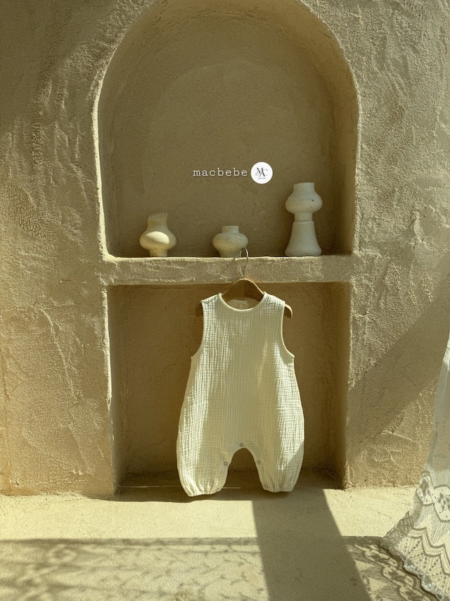 バックボタンクレープロンパース (無地クリーム)