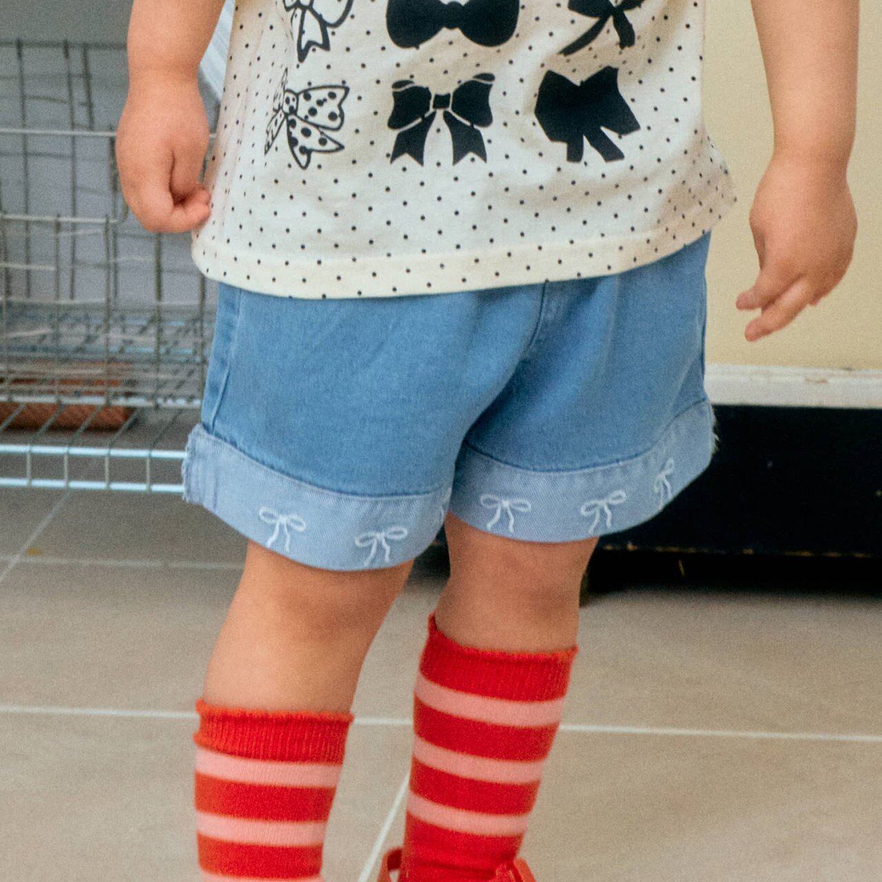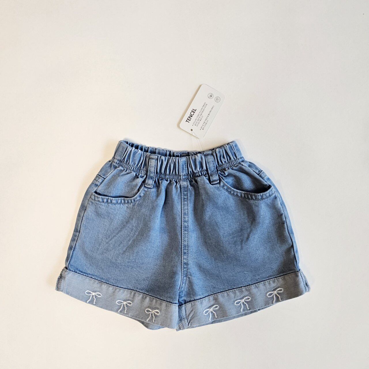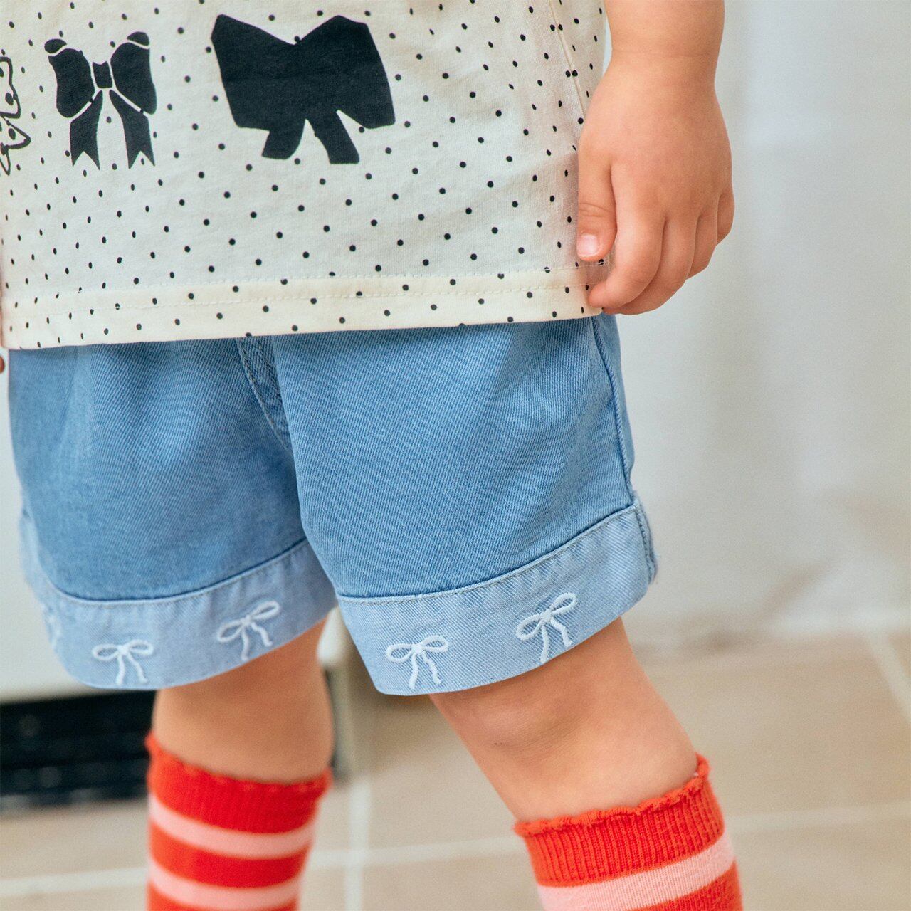 リボン刺繍デニムショートパンツ