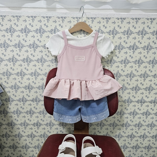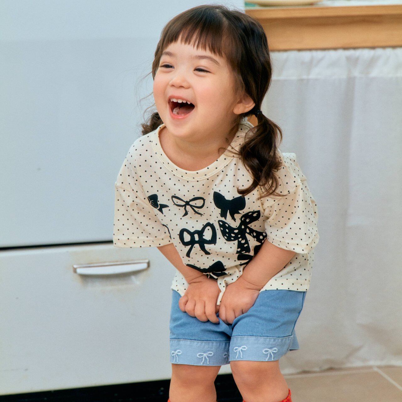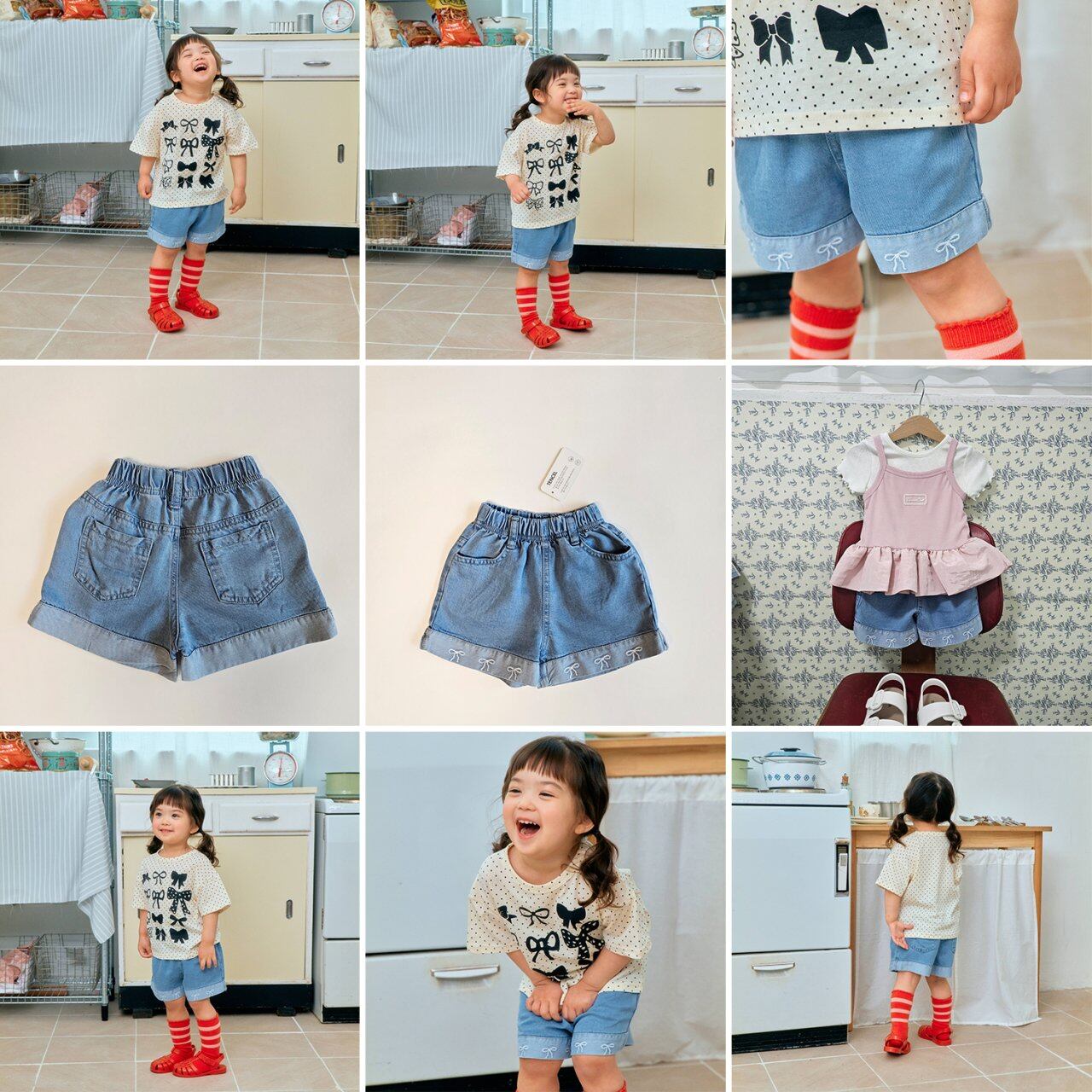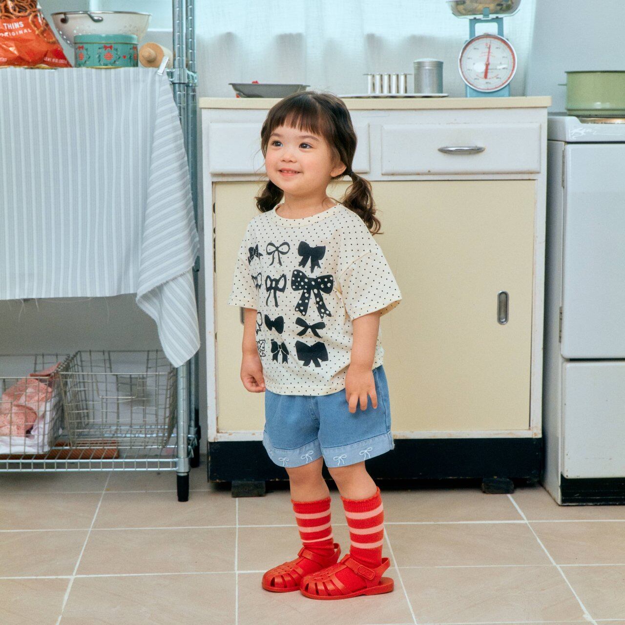 リボン刺繍デニムショートパンツ