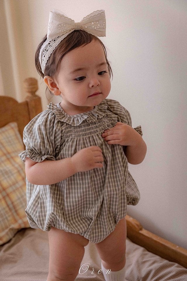 フレンチチェックスモッキングベビースーツ