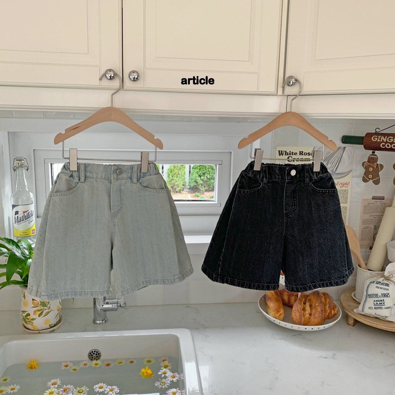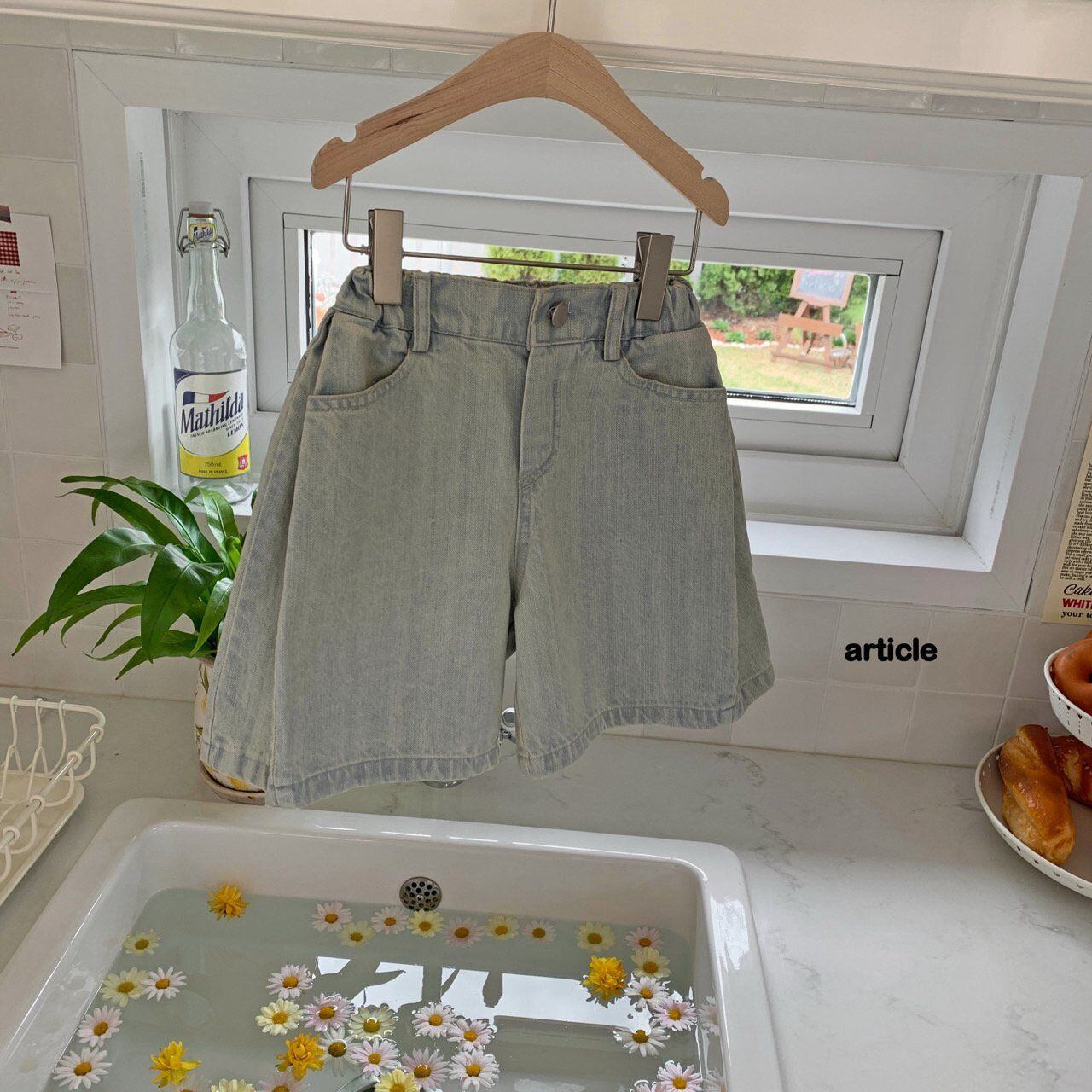 サイドピンタックバミューダデニムパンツ